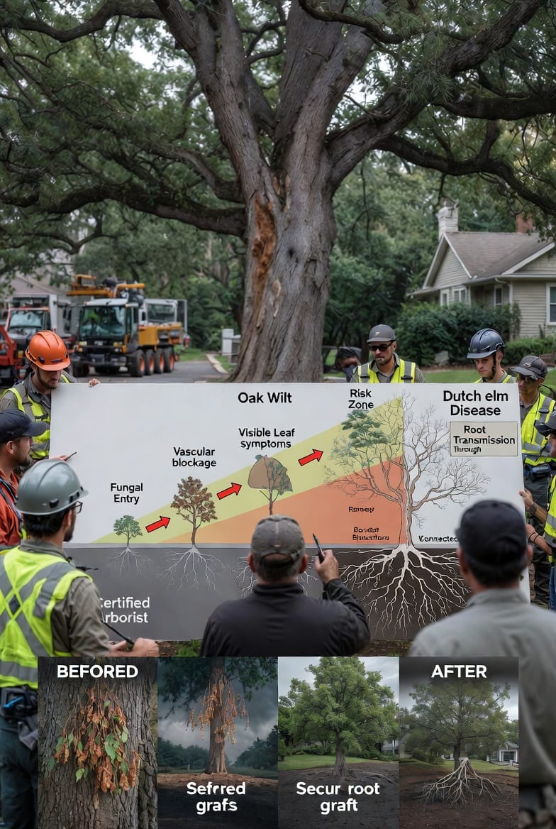 Removal becomes necessary when laboratory confirmation or clear symptom patterns indicate active infection. Leaving an infected oak in place allows the fungus to spread via root connections or sap-feeding beetles, endangering every oak within 50 feet. Certified professionals follow strict protocols: they sever root grafts, remove the tree entirely, and dispose of material to eliminate spore sources.