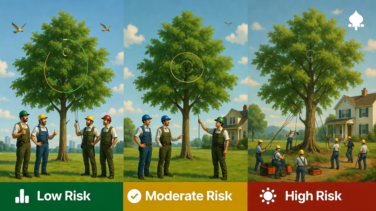 Once all components are analyzed, arborists assign an overall risk rating: low, moderate, or high. This rating combines the likelihood of failure with the severity of potential consequences.
