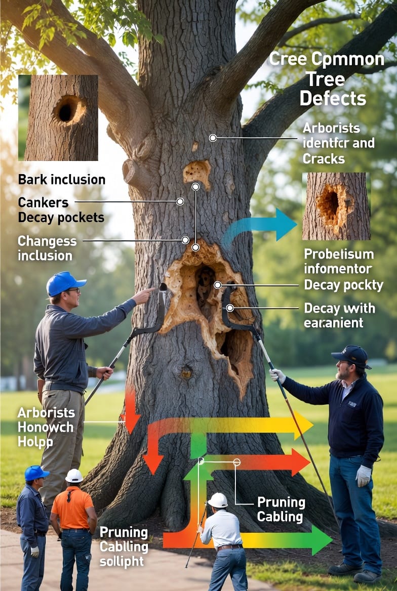 - Cavities and hollows: These often result from past injuries or decay and can significantly weaken the trunk's integrity.