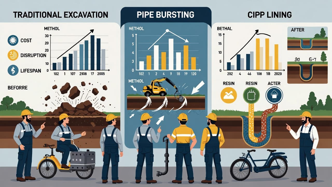 To make your decision easier, consider this comparison of traditional excavation, pipe bursting, and CIPP lining: