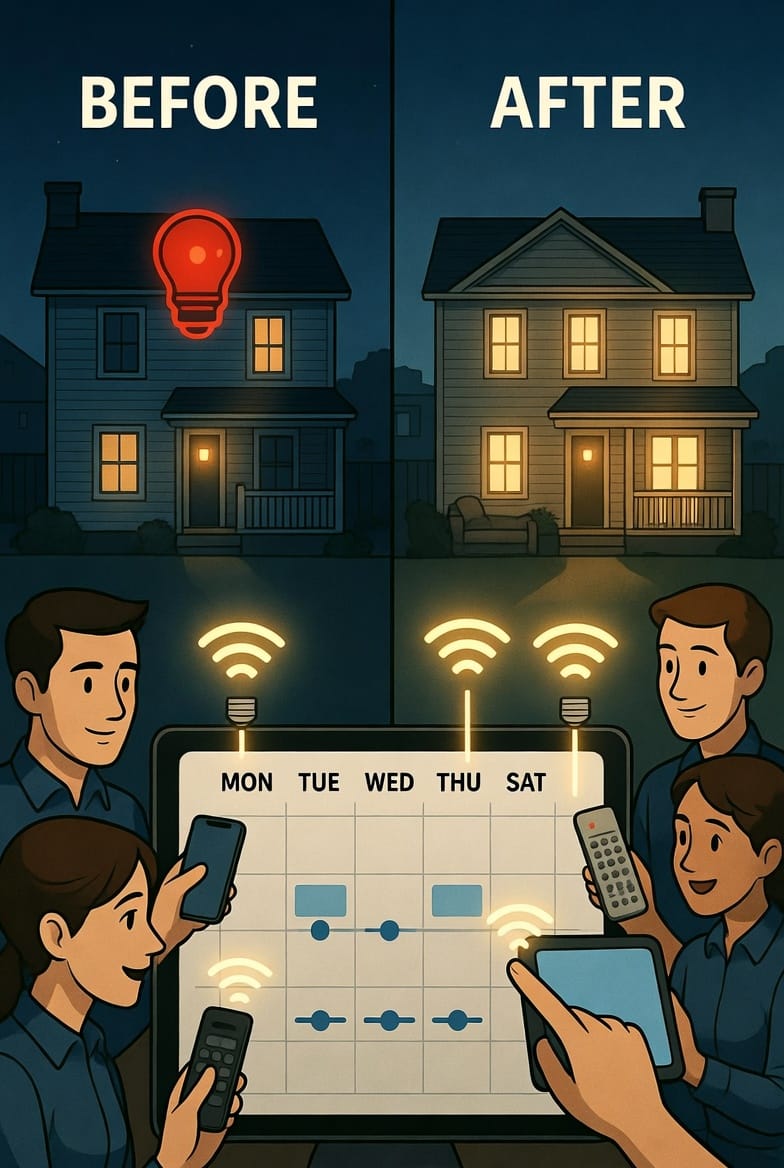- Indoor Lighting Automation: Use apps like Philips Hue or Lutron to set lights in living rooms, kitchens, and bedrooms to turn on/off at irregular intervals, mimicking evening routines.