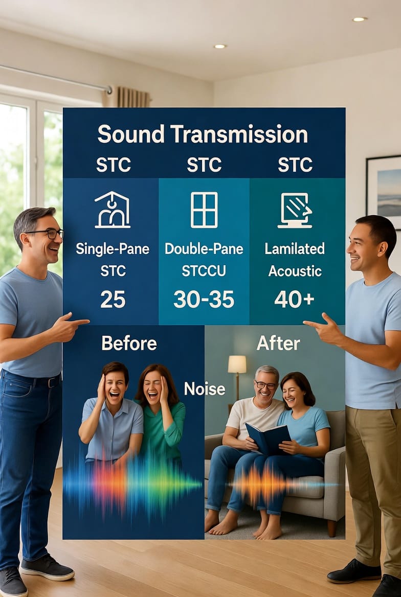 - STC 30–35: Standard double-pane windows; noticeable improvement, but low-frequency noises like airplane engines or bass-heavy traffic may still intrude.