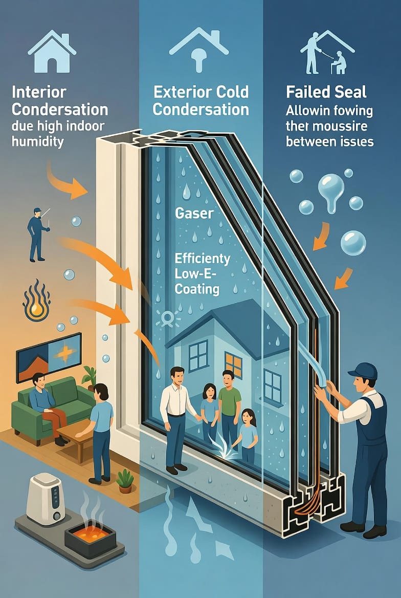 The key lies in location of the moisture. Is it on the room-side surface? The outdoor surface? Or trapped invisibly between the glass panes? Each location tells a completely different story about your home’s comfort, efficiency, and maintenance needs.