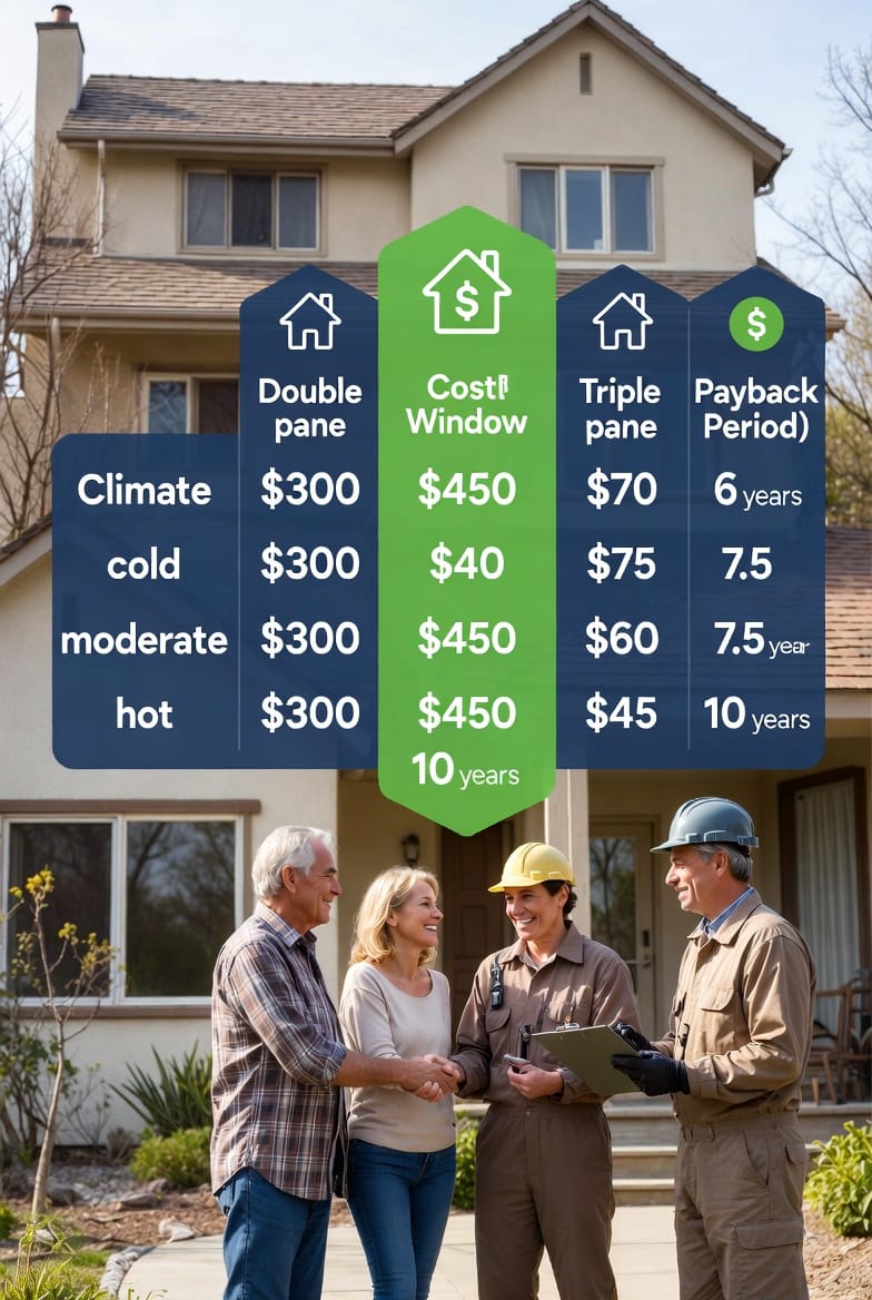 - Triple-pane: Higher upfront cost (typically 15–40% more than double-pane) but fastest payback in extreme cold or hot regions.